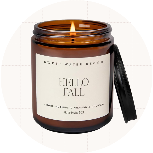 | | Sweet Water Decor Hello Fall Soy Candle | | If you gravitate toward warmer scents when the mercury dips, this cozy candle will be your new favorite. Its soy wax blend features autumnal notes of hot cider, cinnamon, cloves, and nutmeg, and it boasts a burn time of over 40 hours. "Hello Fall" comes in a 9-ounce amber glass jar and has a 100% cotton wick for a cleaner burn. With this delicate, seasonal scent, fall is truly in the air. — Kelsey Morrison, House Outlook Editor |