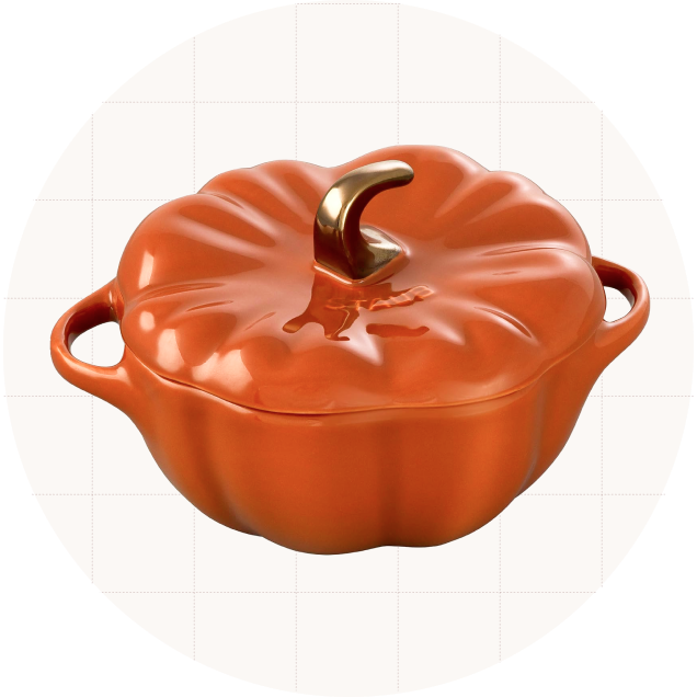 | | STAUB Ceramic 0.75-Quart Petite Pumpkin | | Who doesn't love functional fall decor? This petite pumpkin from STAUB is made from heavy stoneware and is oven-safe up to 572 degrees Fahrenheit. Pictured here is the 0.75-quart version in burnt orange, but it's also available in a 0.50-quart size and comes in matte black or rustic ivory. Use it to house your secret stash of candy corn or to serve a seasonal dip on Thanksgiving. — Kelsey Morrison, House Outlook Editor |