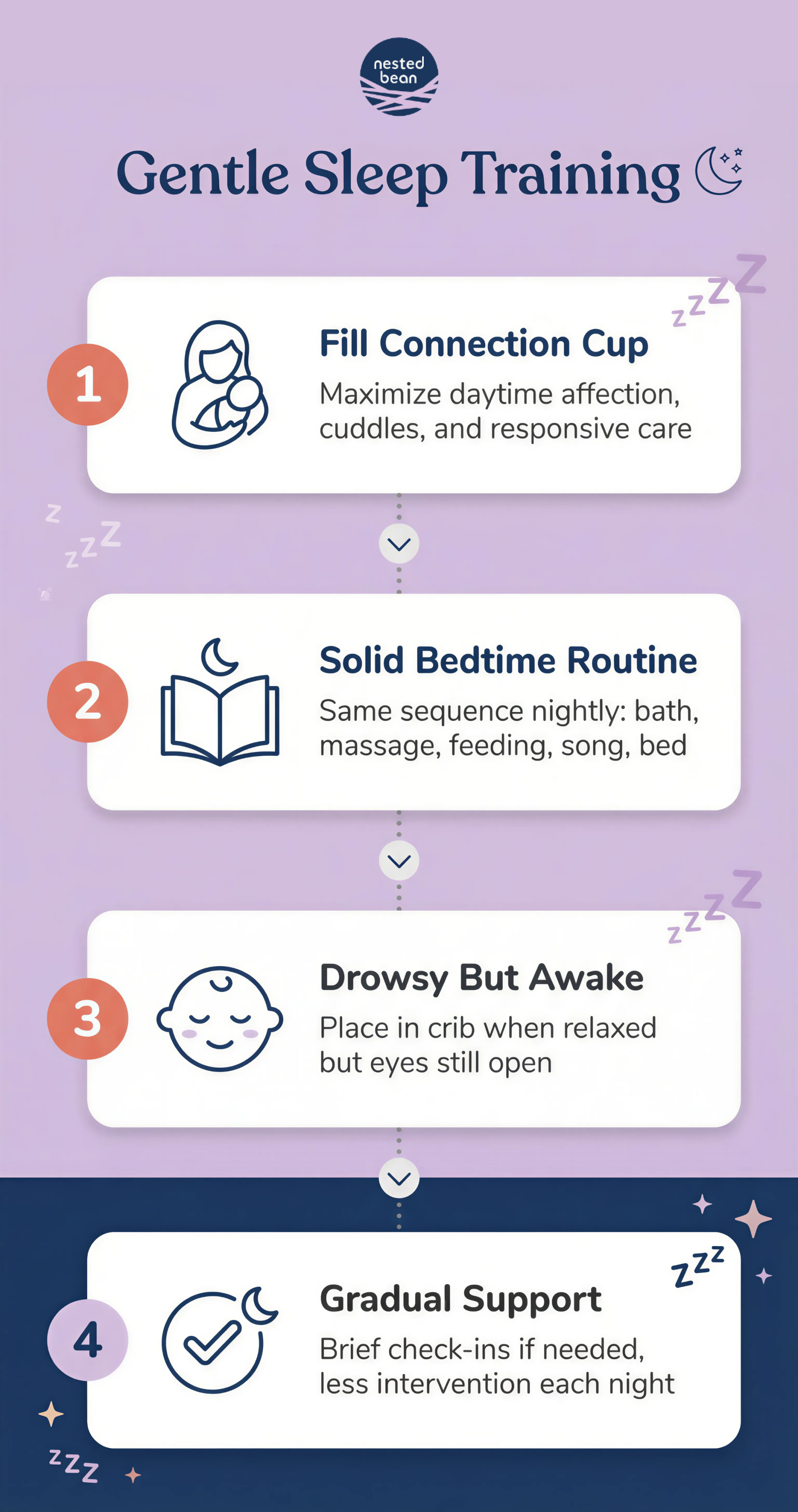 Why Gentle Sleep Training Works? You want your baby to sleep independently... but not at the cost of connection. Gentle sleep training supports both. It helps your baby learn to self-soothe while feeling safe, secure, and deeply loved!