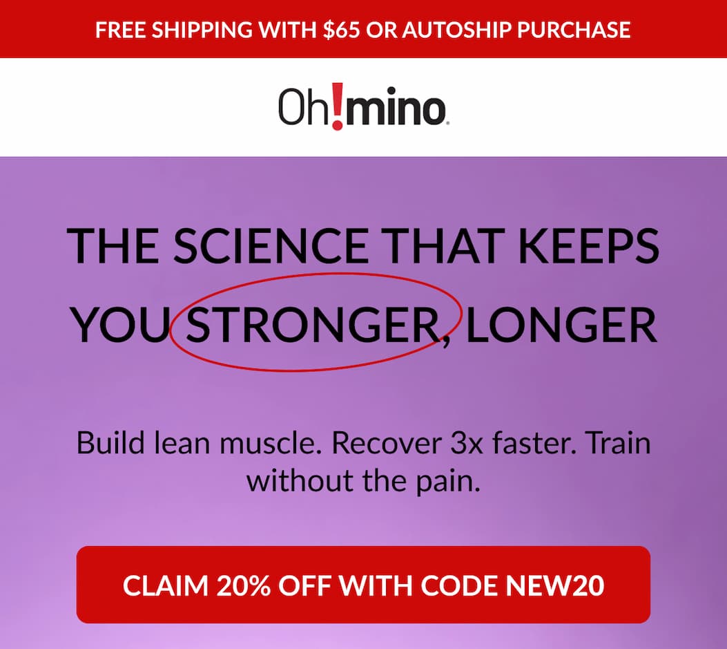 No longer want to receive these emails? Unsubscribe.Oh!mino 3020 Old Ranch Parkway Suite 300 Seal Beach, California 90740 | | At Oh!mino, our mission is to build a vibrant community that celebrates science-backed amino acid-based health and performance supplements that work. We are passionate about discovering and sharing products that enhance your lifestyle. As much as we care about our proprietary blend of EAA + HMB formulas, we also care about your privacy. Oh!mino is owned and operated by Oh!mino. We are committed to advising you of the right to your privacy, and strives to provide a safe and secure user experience. Our Privacy Policy explains how we collect, store and use personal information, provided by you on our website. It also explains how we collect and use non-personal information. By accessing and using our website, you explicitly accept, without limitation or qualification, the collection, use and transfer of the personal information and non-personal information in the manner described in our Privacy Policy. Please read this Policy on our website(s) carefully, as it affects your rights and liabilities under the law. If you disagree with the way we collect and process personal and non-personal information, please do not use this website. This Policy applies to this website as well as all webpages Company hosts. It regulates the processing of information relating to you and grants both of us various rights with respect to your personal data. It also informs you of how to notify us to stop using your personal information. We are located in the United States. You may be located in a country that has laws which are more restrictive about the collection and use of your personal information. However, by using our website, you agree to waive the more restrictive laws and agree to be governed by the laws of the United States. If you wish to view our official policies, please visit our website. At Oh!mino, we are strongly committed to protecting your privacy and providing a safe & high-quality online experience for all of our visitors. We understand that you care about how the information you provide to us is used and shared. We have developed a Privacy Policy to inform you of our policies regarding the collection, use, and disclosure of information we receive from users of our website. Oh!mino operates the Website. Our Privacy Policy, along with our Term & Conditions, governs your use of this site. By using https://ohmino.com or by accepting the Terms of Use (via opt-in, checkbox, pop-up, or clicking an email link confirming the same), you agree to be bound by our Terms & Conditions and our Privacy Policy. If you have provided personal, billing, or other voluntarily provided information, you may access, review, and make changes to it via instructions found on the Website or by emailing us at info@ohmino.com. To manage your receipt of marketing and non-transactional communications, you may unsubscribe by clicking the unsubscribe link located on the bottom of any marketing email. Emails related to the purchase or delivery of orders are provided automatically – Customers are not able to opt out of transactional emails. We will try to accommodate any requests related to the management of Personal Information in a timely manner. However, it is not always possible to completely remove or modify information in our databases (for example, if we have a legal obligation to keep it for certain timeframes, for example). If you have any questions, simply reply to this email or visit our website to view our official policies. | | | | |